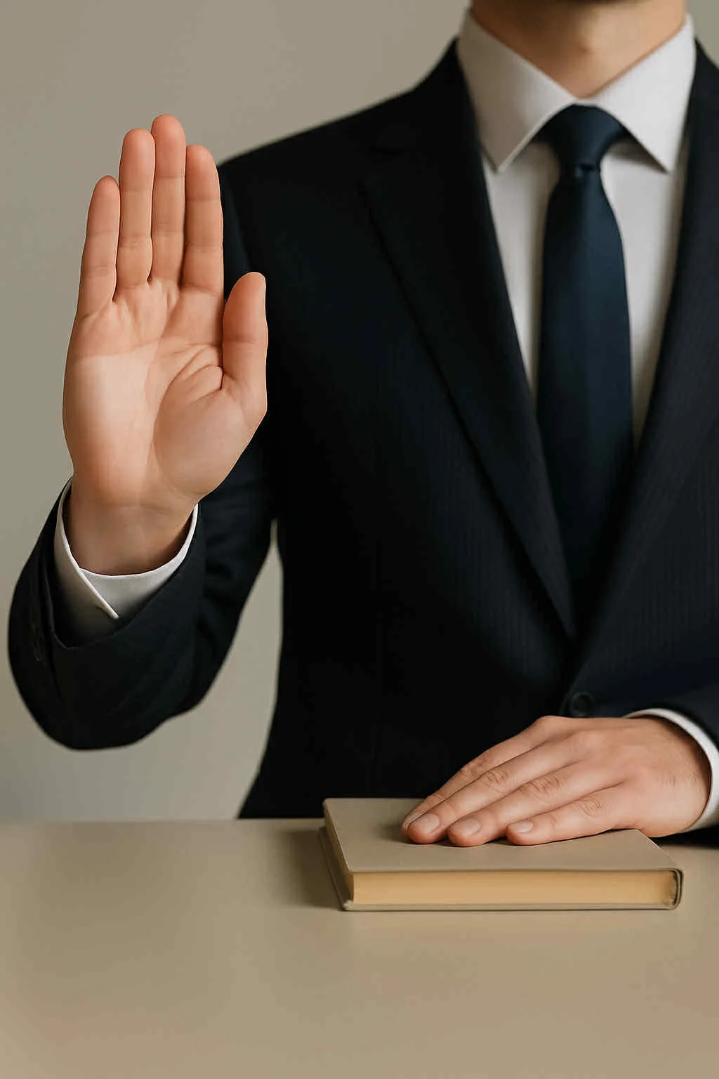 An oath or affirmation is a solemn declaration made before a notary public, binding the individual to truthfulness under penalty of perjury. Typically administered for testimony, affidavits, or written statements requiring verified honesty.